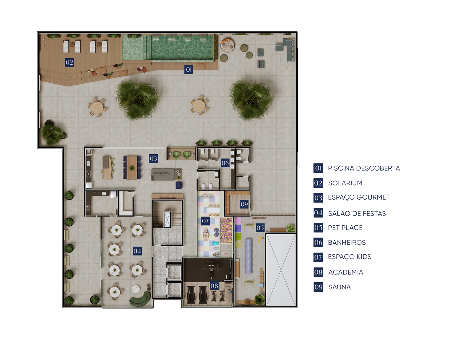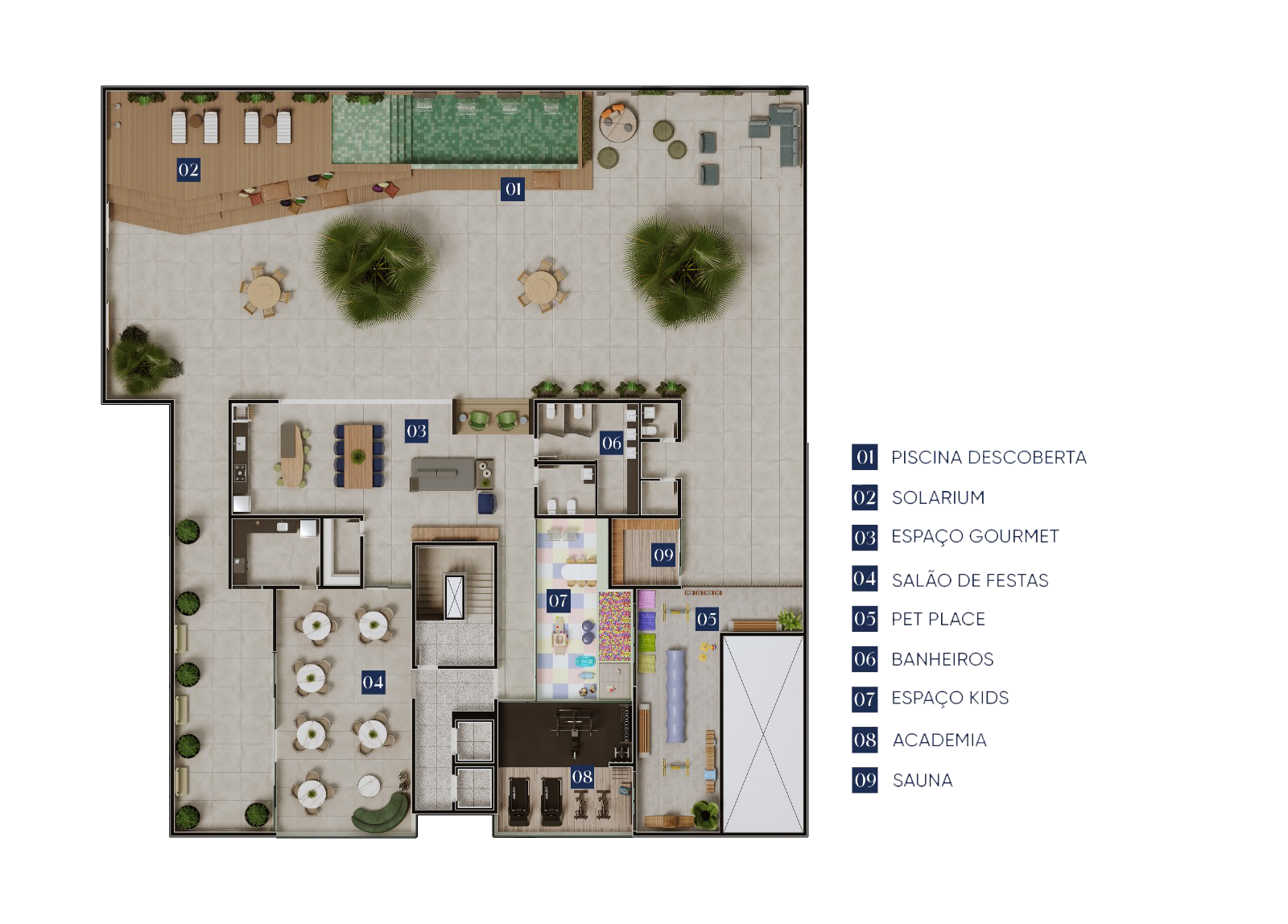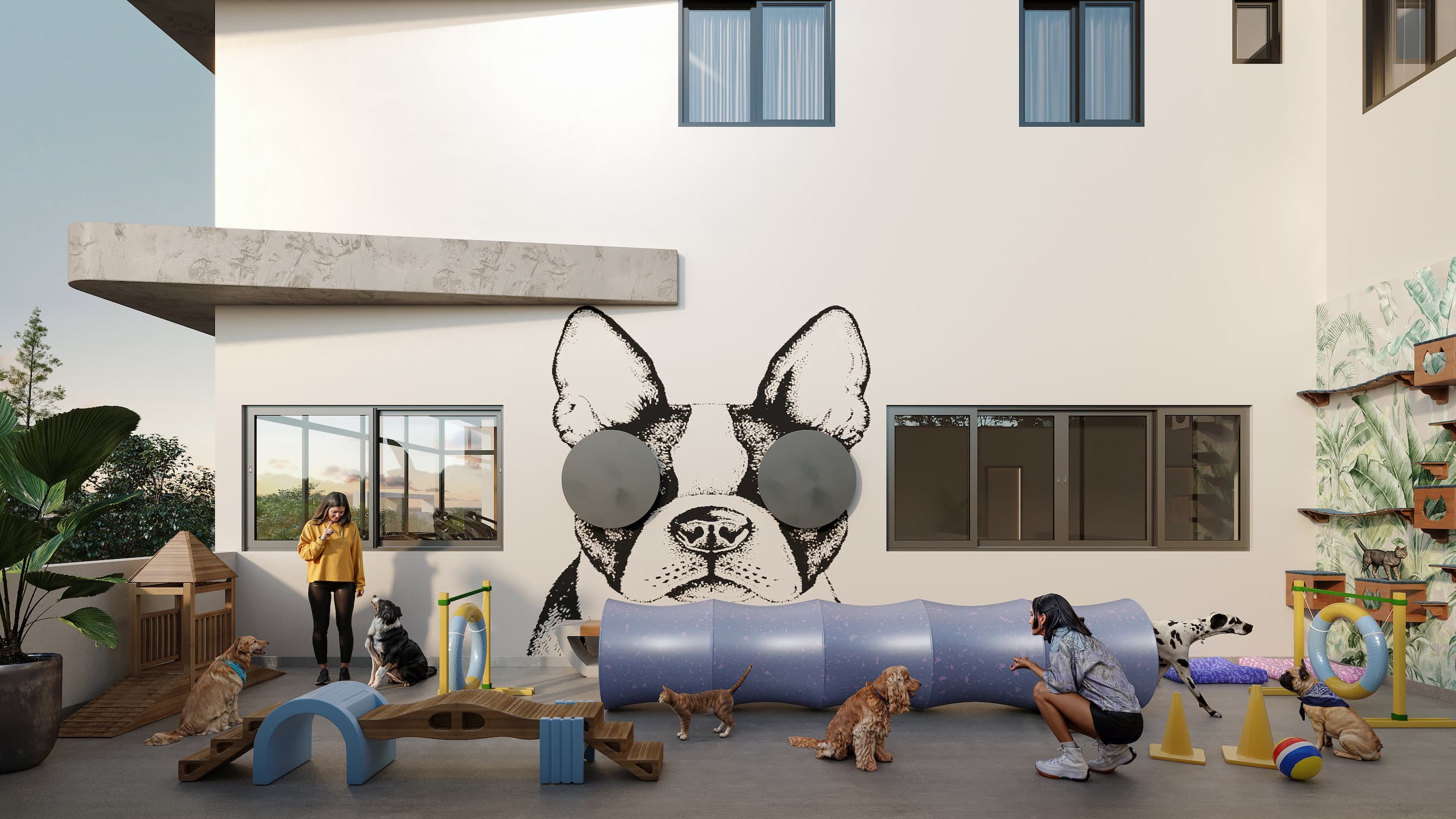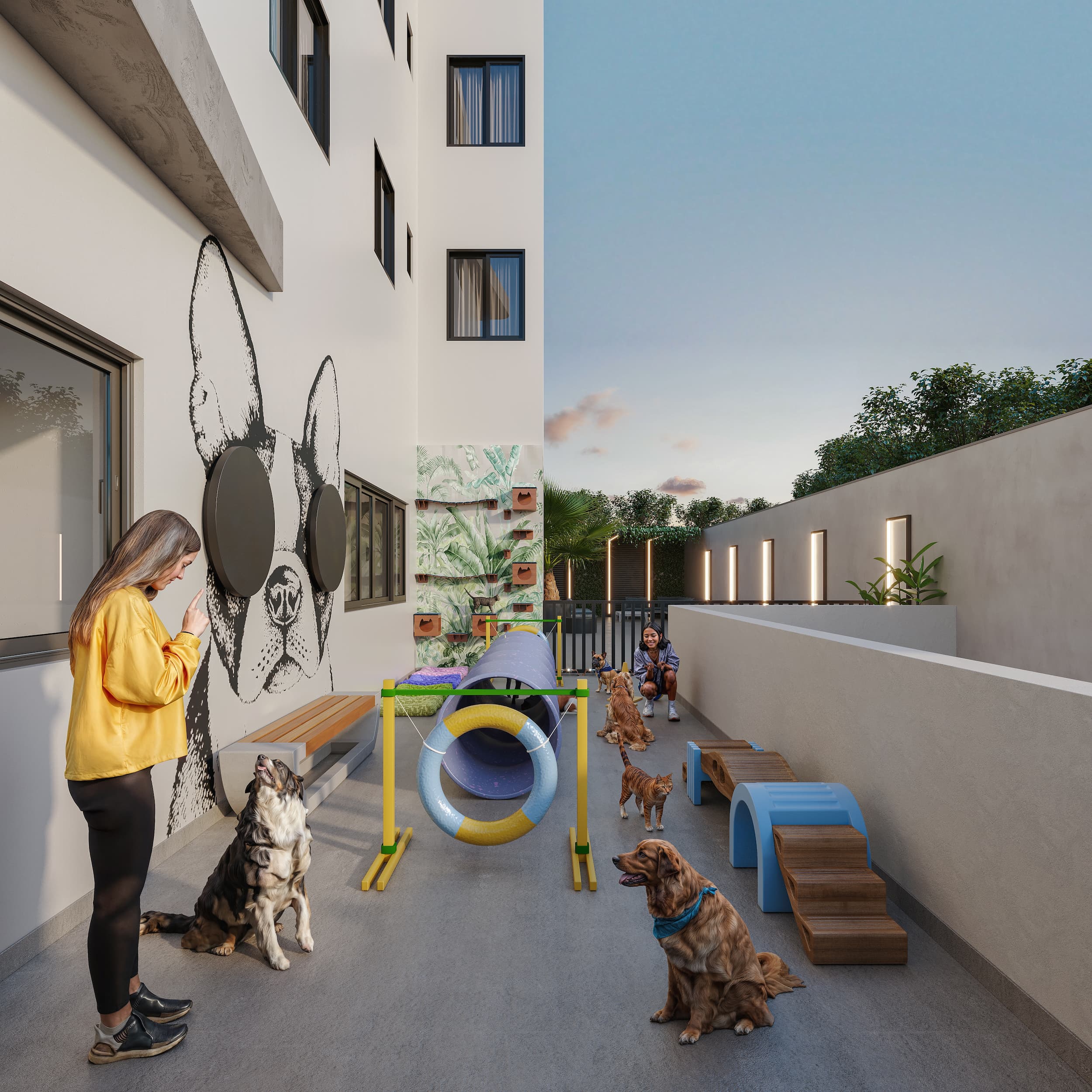 O Espaço Pet conta com infraestrutura completa para lazer e cuidados, oferecendo um ambiente seguro, confortável e ideal para momentos de diversão e bem-estar com seu animal de estimação.