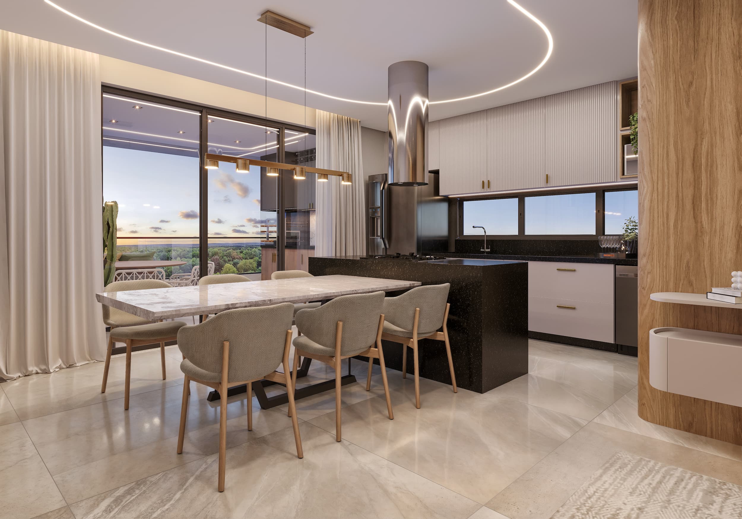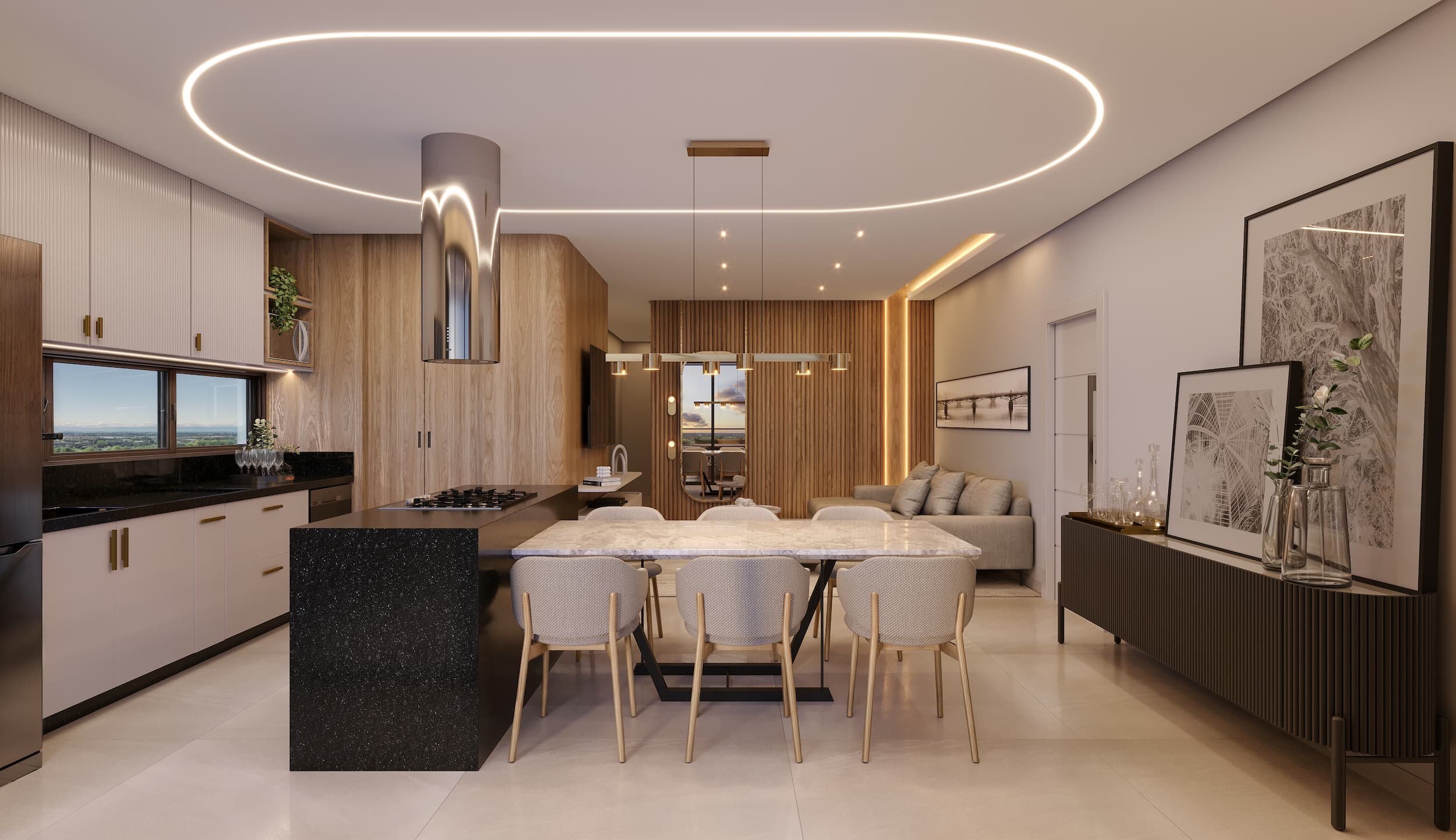 Ambientes amplos e integrados, pensados para oferecer conforto, elegância e praticidade em cada detalhe.